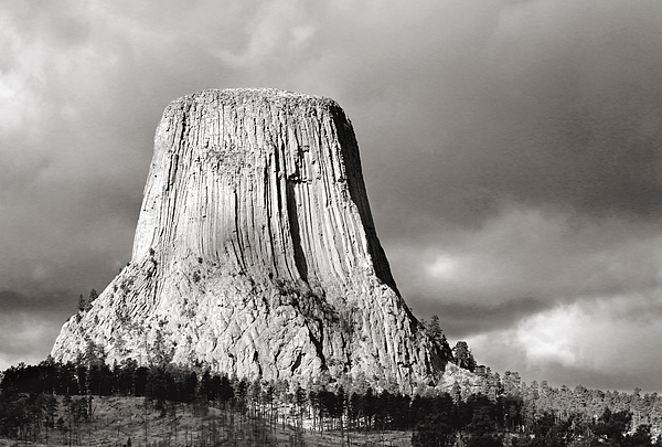 Devil's Tower Black and White Beach Towel